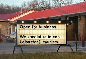 In such circumstances, businesses are likely to do just about anything to draw what tourists they can. Though I don’t know of particular cases, it wouldn’t be at all surprising to see some companies cutting corners, ethically speaking. For example, imagine a potential vacationer calls up a resort on the fringe of the affected area, wanting to know whether that particular stretch of beach is still vacation-worthy. And imagine that the usability of the beach is borderline. What answer should the owner of the resort give, over the phone? How scrupulously honest does she have to be, when the survival of her business (and the livelihood of her employees) is on the line?