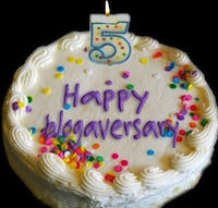 Five years ago today, I posted my very first blog entry. It had no real substance, but it was a start. Five years later, I’m still blogging. And given that the average lifespan of a blog is something less than the average lifespan of a fruit fly, I think I now get to call myself a veteran blogger.
